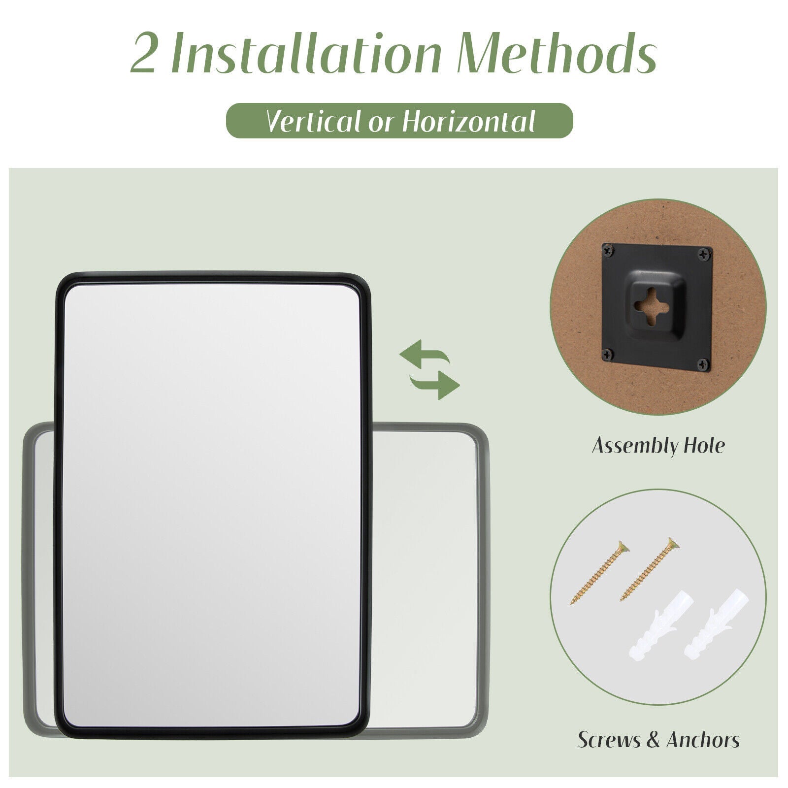 This multifunctional mirror is an ideal choice for you and your family. You can hang it vertically or horizontally in your bedroom living room dining room etc. And it can be used as a vanity mirror for you to make up or a decorative tool to beauty your room. Besides it’s 3-layer construction (premium glass rust-resistant steel frame and solid MDF backboard) ensures high durability and long-lasting service life. After hanging it is stable and not easy to tilt. In addition 3 assembly holes screws anchors and clear user manual help you to assemble it without effort. If you are looking for a mirror like this do not hesitate to place an order! Premium glass material for clear refection and no distortion Great shatter resistance and explosion for safe use Features multi-layer structure: inner glass rust-resistant steel frame and solid MDF backboard Can be hung vertically or horizontally Able to serve as a vanity mirror or a decorative item Good addition to living room bedroom dining room and more 3 assembly holes screws anchors and clear user manual for convenient assembly