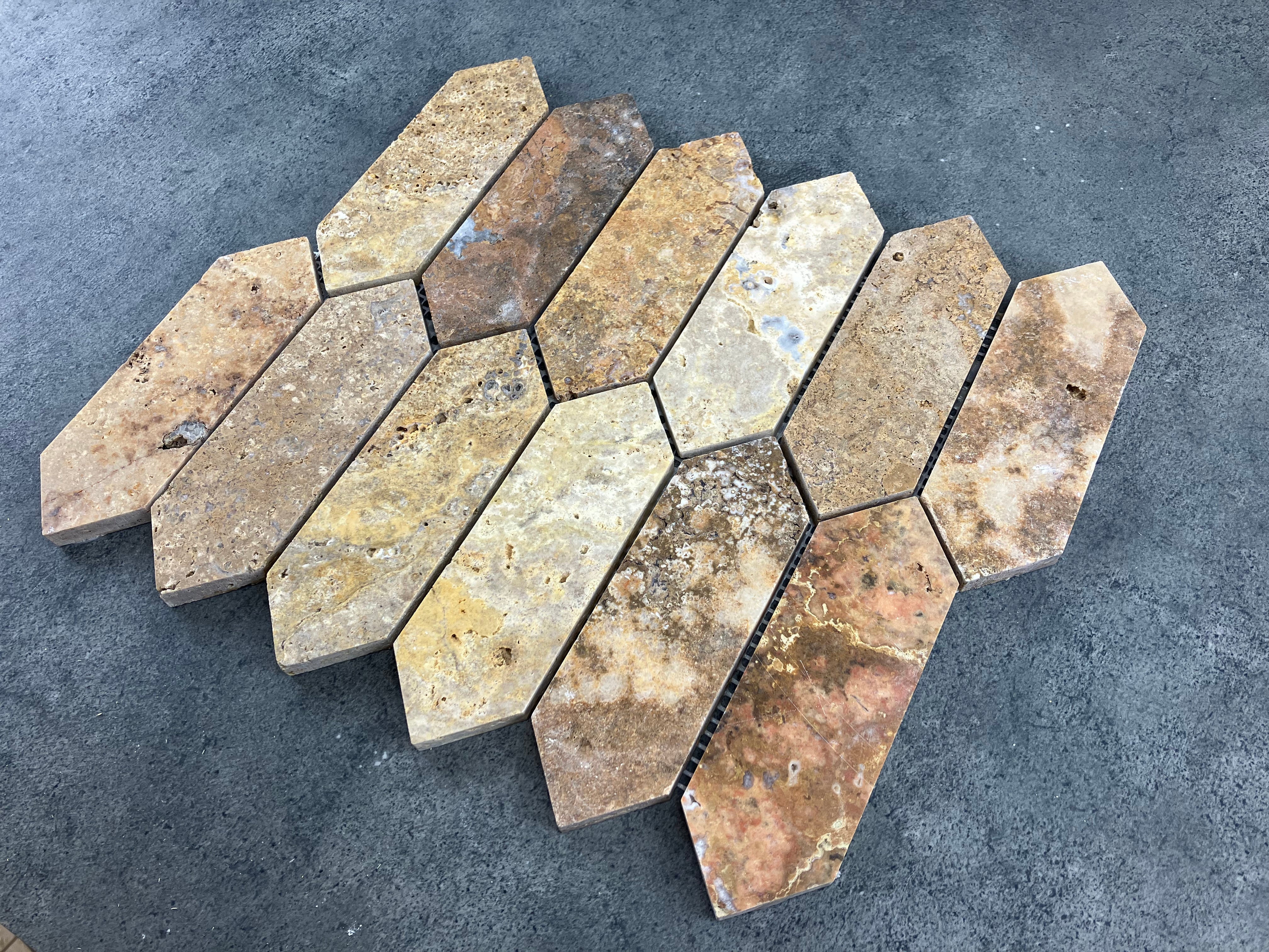 This travertine veneer is the perfect choice for any construction project. It will add a sophisticated appearance to accent walls, furniture, backsplashes, DIY decor, etc. All mosaic stones are fixed with a 12x12 mesh to provide a continuous appearance.