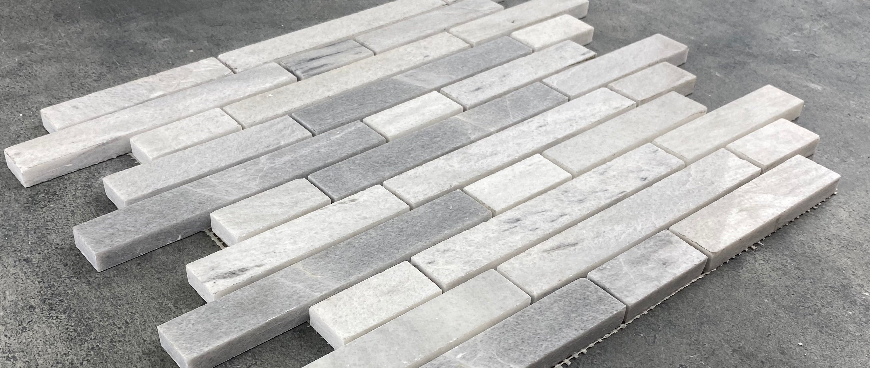 Solto White Marble Strip Liner on 12" x 12" Mesh Mosaic Tile