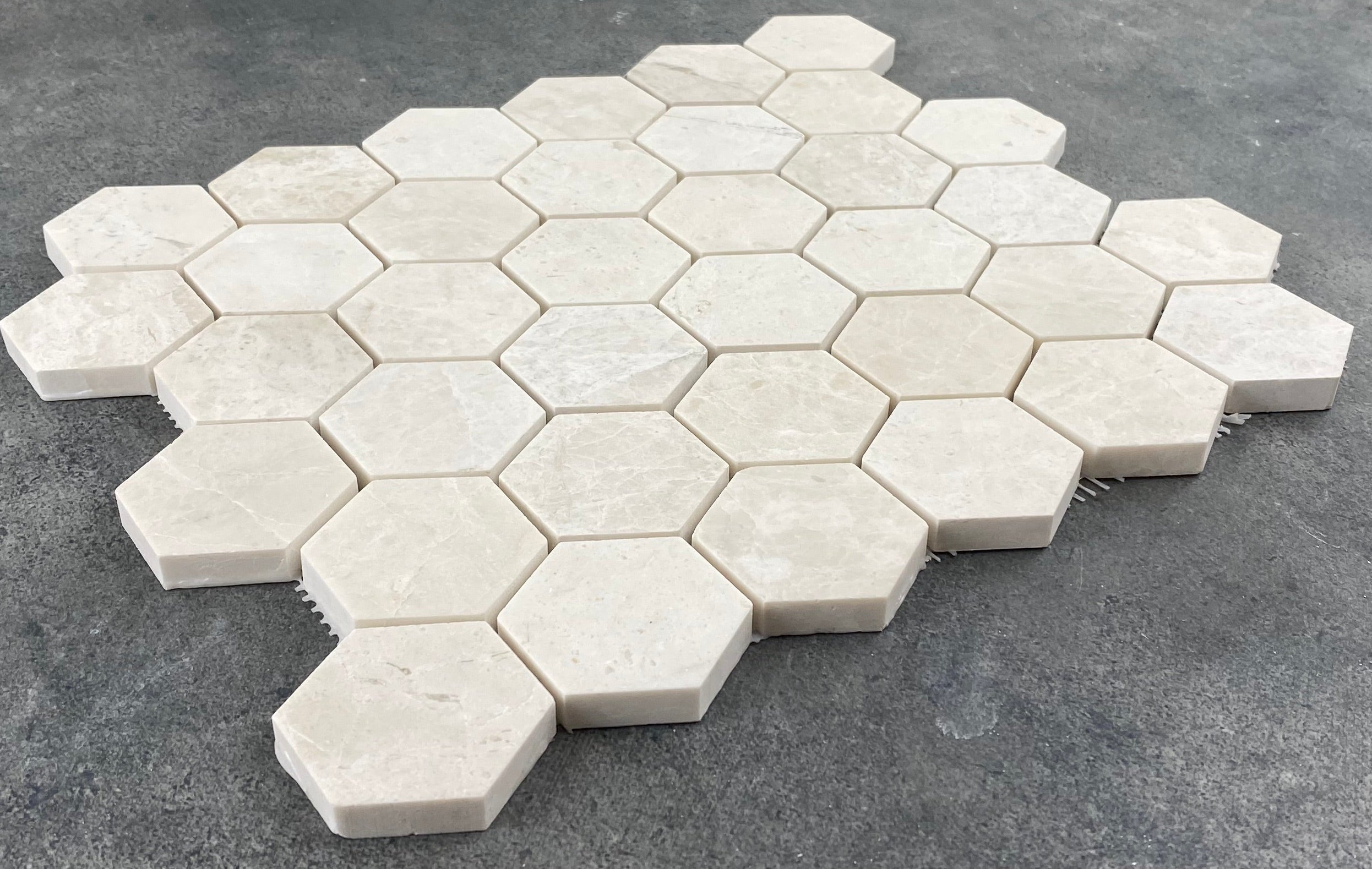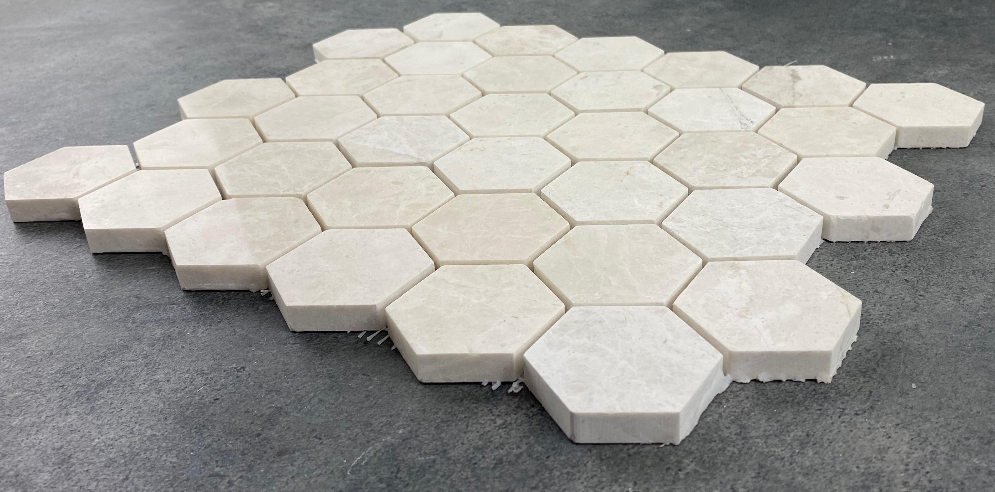 Vanilla Beige Marble 2" Hexagon on 12" x 12" Mesh Mosaic Tile