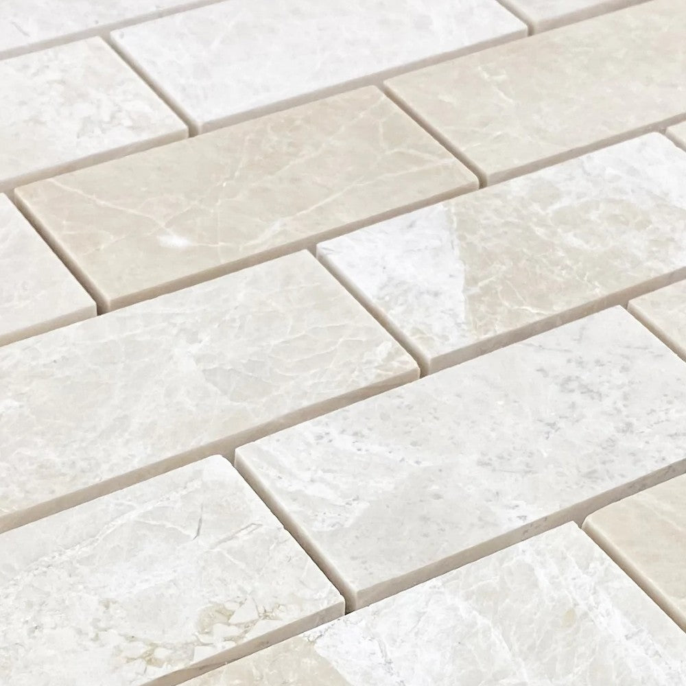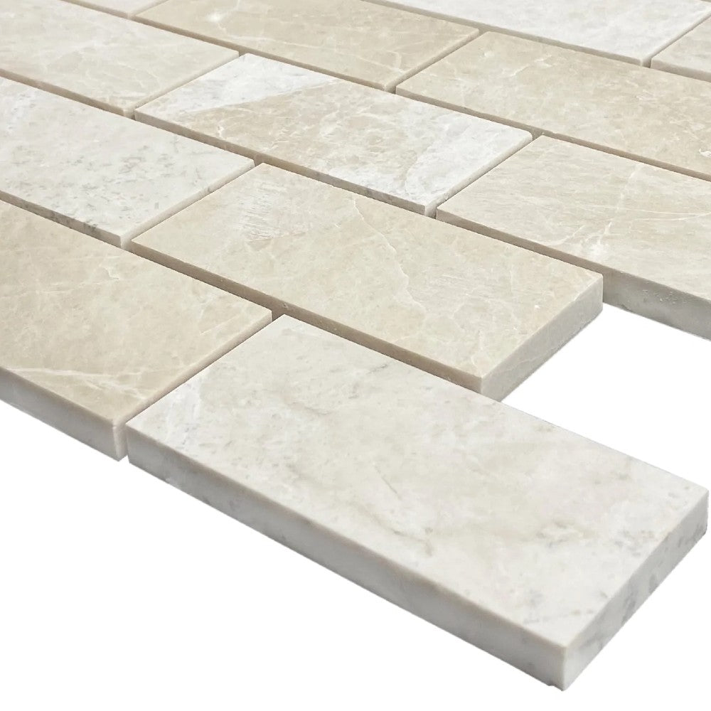 Vanilla Beige Marble 2"x4" Brick Honed on 12" x 12" Mesh Mosaic Tile