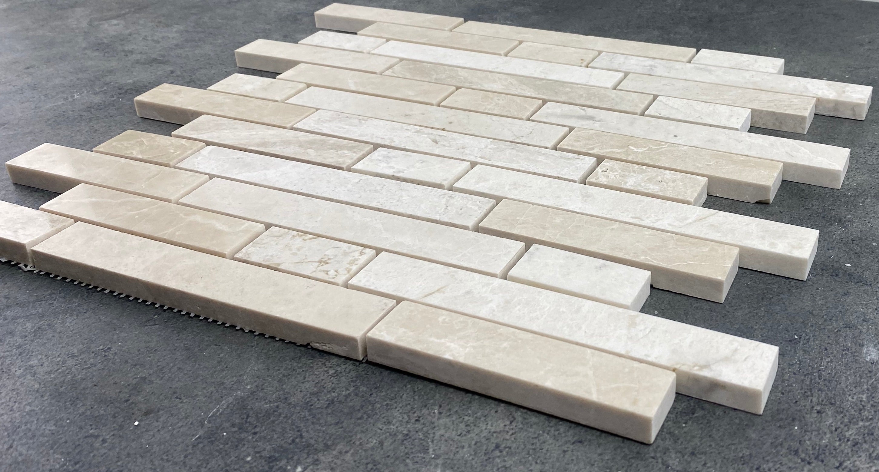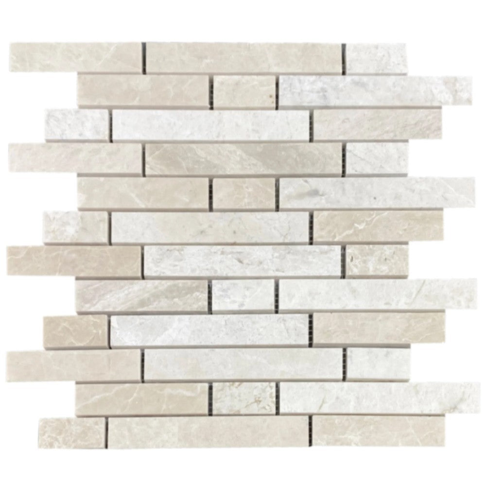 Vanilla Beige Marble Strip Liner on 12" x 12" Mesh Mosaic Tile