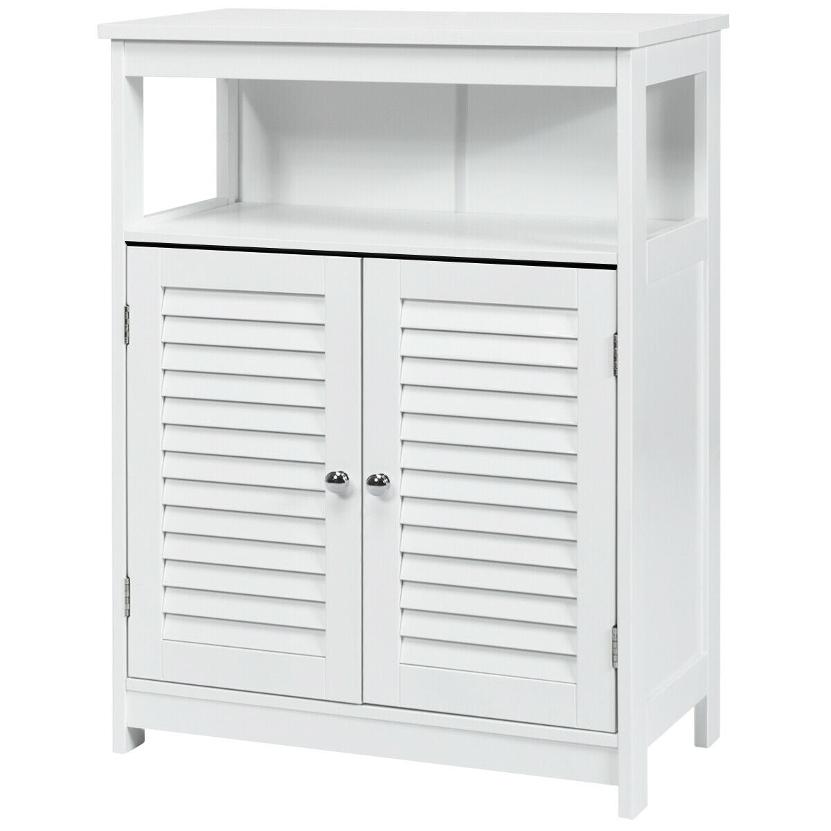 Wood Freestanding Bathroom Storage Cabinet with Double Shutter Door-White